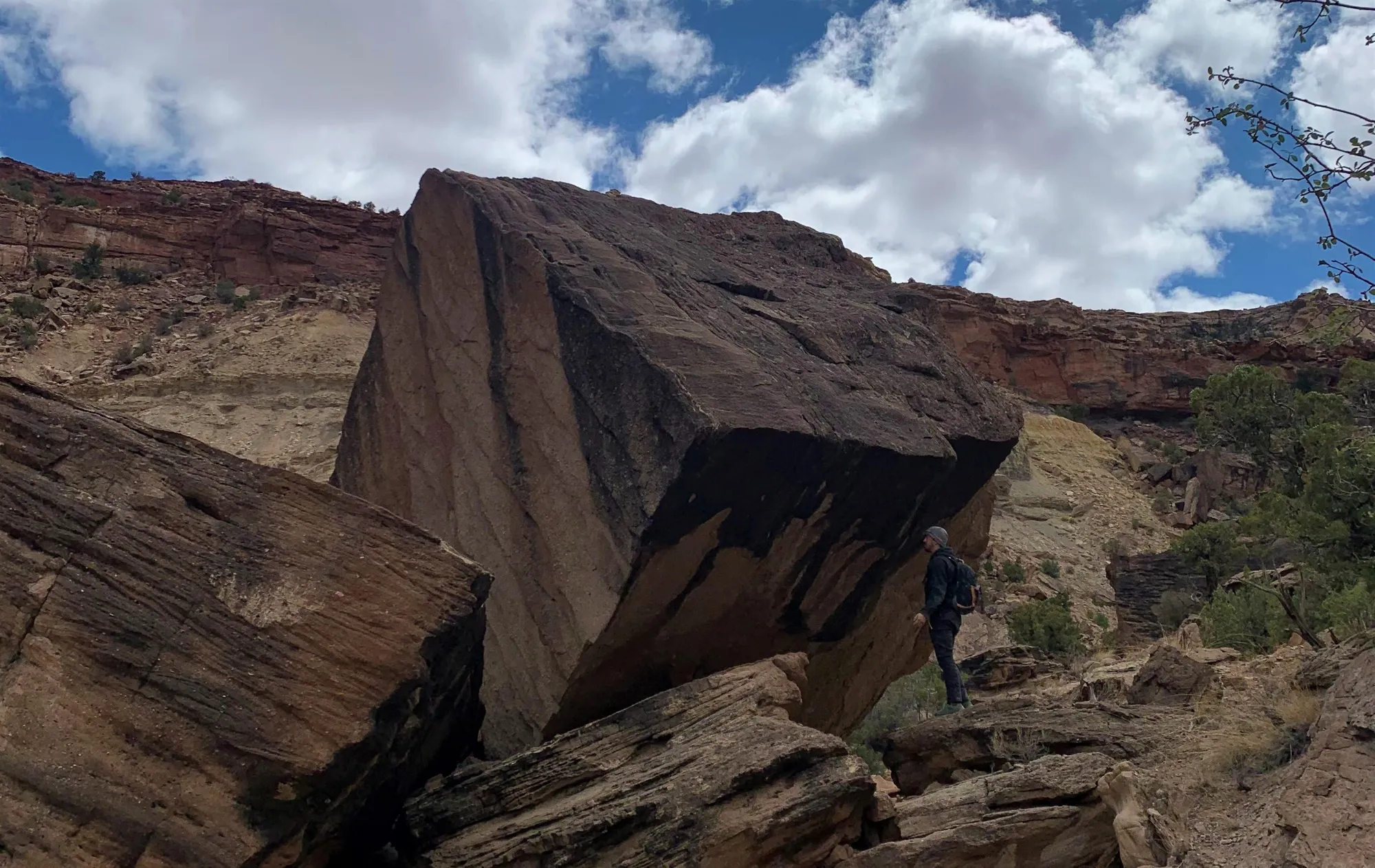 The Swell is the San Rafael Swell in South Central Utah, a desert sandstone area about a three hours’ drive from Salt Lake City. Since there is so much rock with so little developed, Aaron aims to have a developer’s guide published by May of this year. This will contain information about open projects, cleaned and uncleaned lines, landing zones, as well as established problems. As climbers come and send the projects, Aaron will be able to continuously update the guide with new first ascents. Once he’s sent most of the problems, he can finalize the guide.