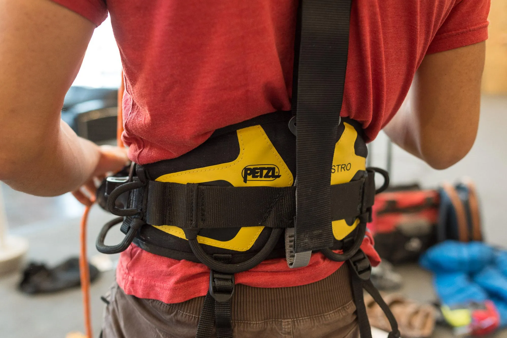 seat and chest harness dramatically increases routesetter comfort and stability;