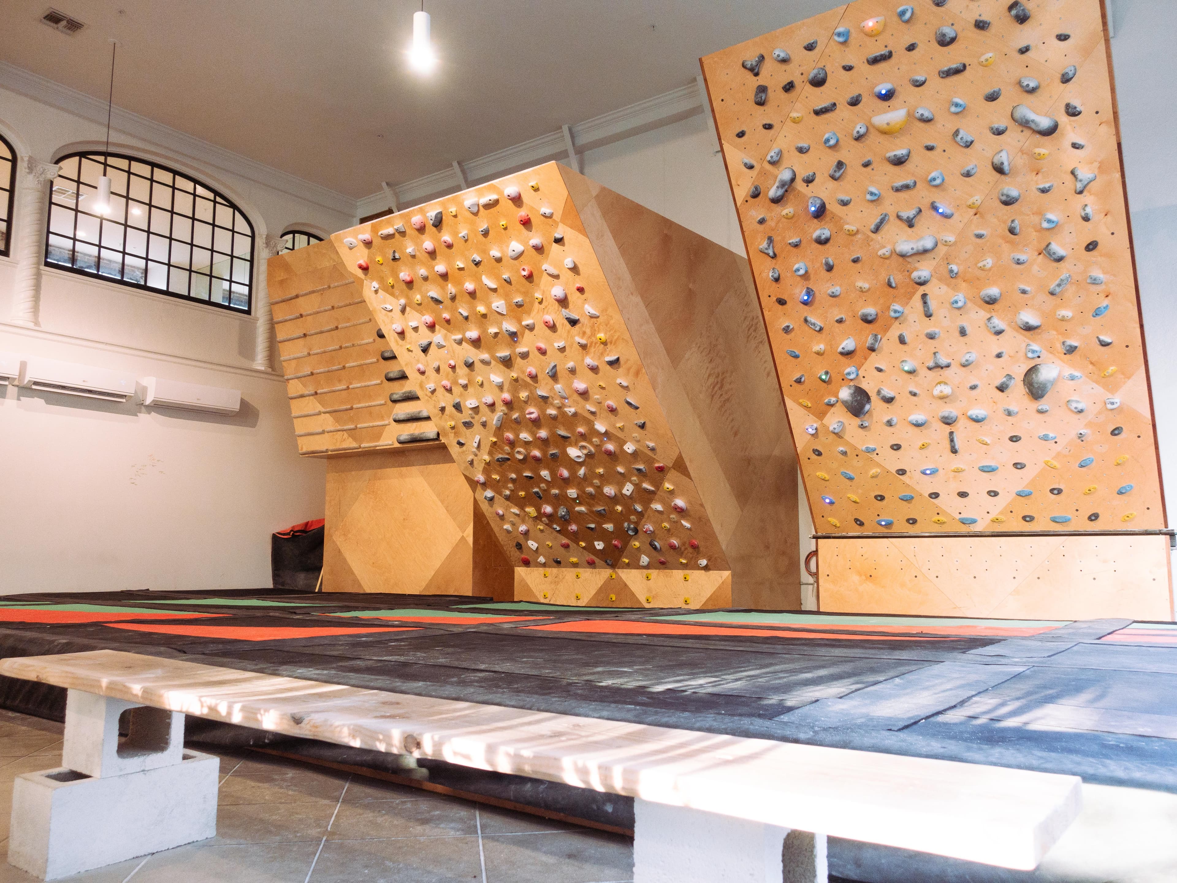 Across from the entrance, both fixed-angle and adjustable training walls are available for more experienced climbers looking to push their skills off LBR’s main walls. The full collection includes a campus board, a spray wall, and freestanding ATP system with integrated LEDs.