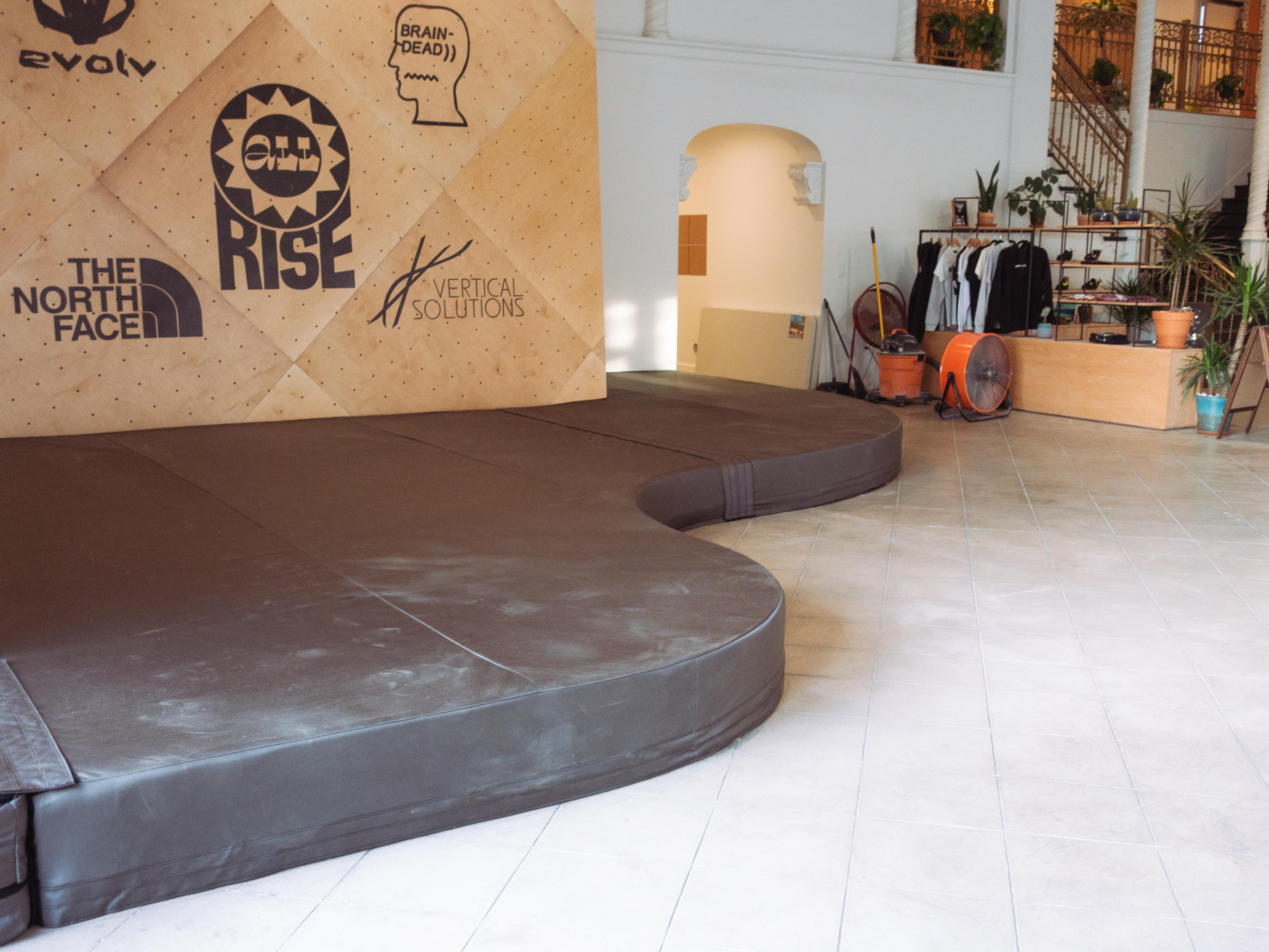 All Rise is a special project aimed at access and inclusivity at Long Beach Rising, a previous success story we had the privilege of building. Designed to accommodate new climbers of all ages, these slab walls are purpose-built to serve kids who receive free access to the gym through local grants and the Long Beach YMCA club. The corner wall features a short roped areas for introduction to climbing, a beginner bouldering area, and durable and comfortable 12” Habit Flooring pads. The wall, which greets climbers as they enter the facility, features digitally printed logos from the main sponsors of the All Rise experimental DEI project, as well as Vertical Solutions.