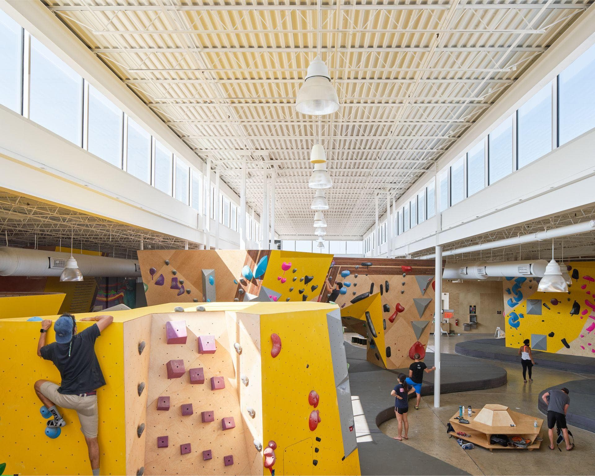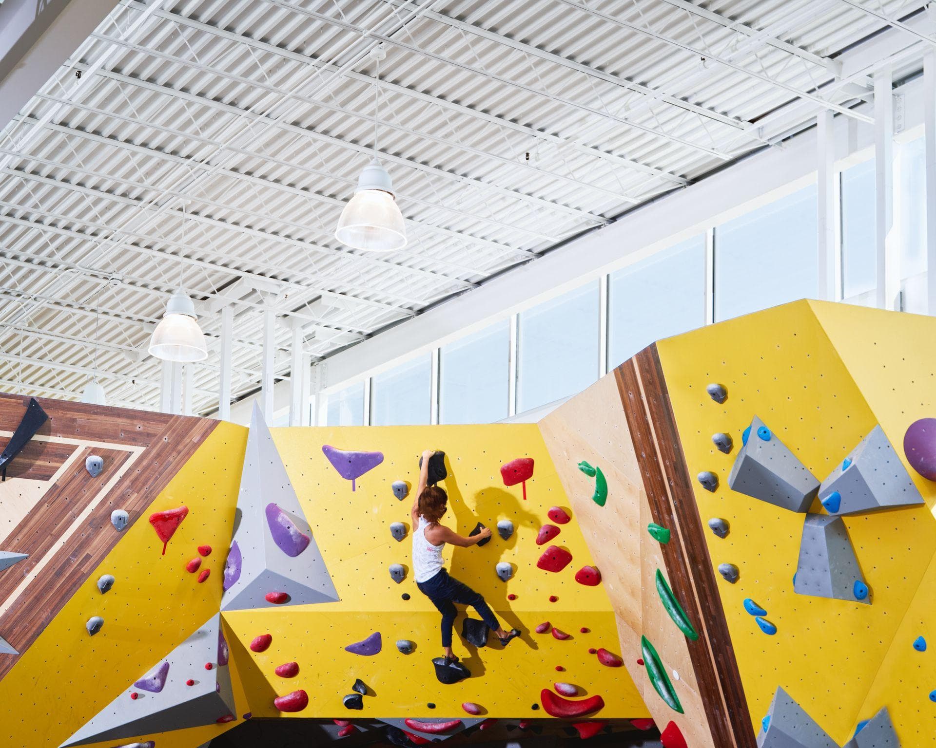 The Austin climbing community has been bursting at the seams, and one Crux wasn’t enough. A short year after opening its first location, Crux opened another on the other side of town. Freestanding boulders and a unique cavern experience bring this gym beyond the average and into the extraordinary. Our classic birch argyle, hardwood inlays, and vibrant geometic paint accent the walls. Crux focused on the community and recognized the need to support lifestyle elements beyond climbing by offering a wide variety of spaces including yoga, fitness, a kids’ room, and a sunny lounge.