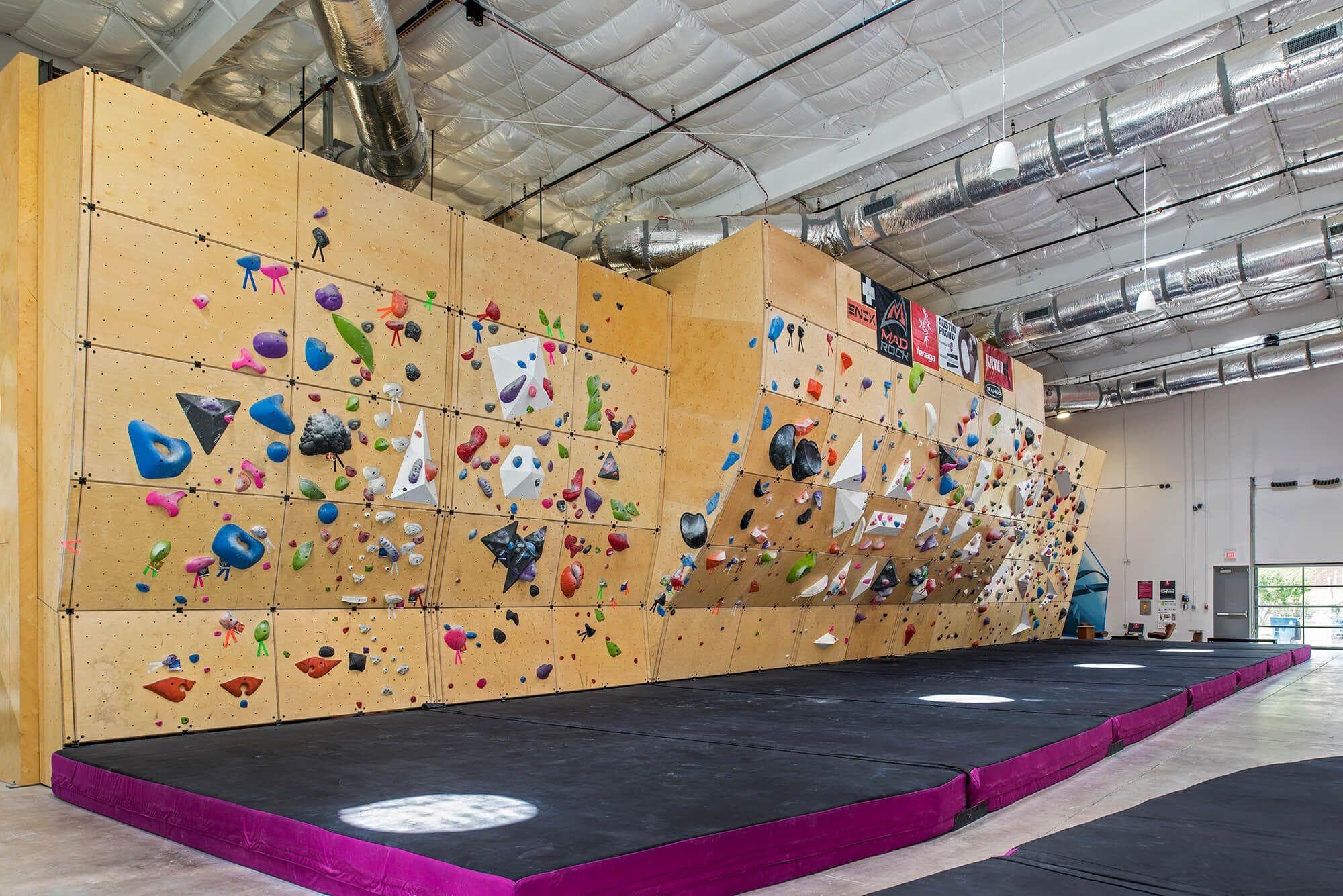 Crux's first location in Austin, TX, boasts nearly 11,000 square feet of climbing space, including windows to climb on, a 1,400-square-foot cave with a fully-climbable 13’ roof, intricate lighting detail, and an adjustable climbing wall called the “Future Wall,” with custom Habit Flooring and specialized wall colors and textures.