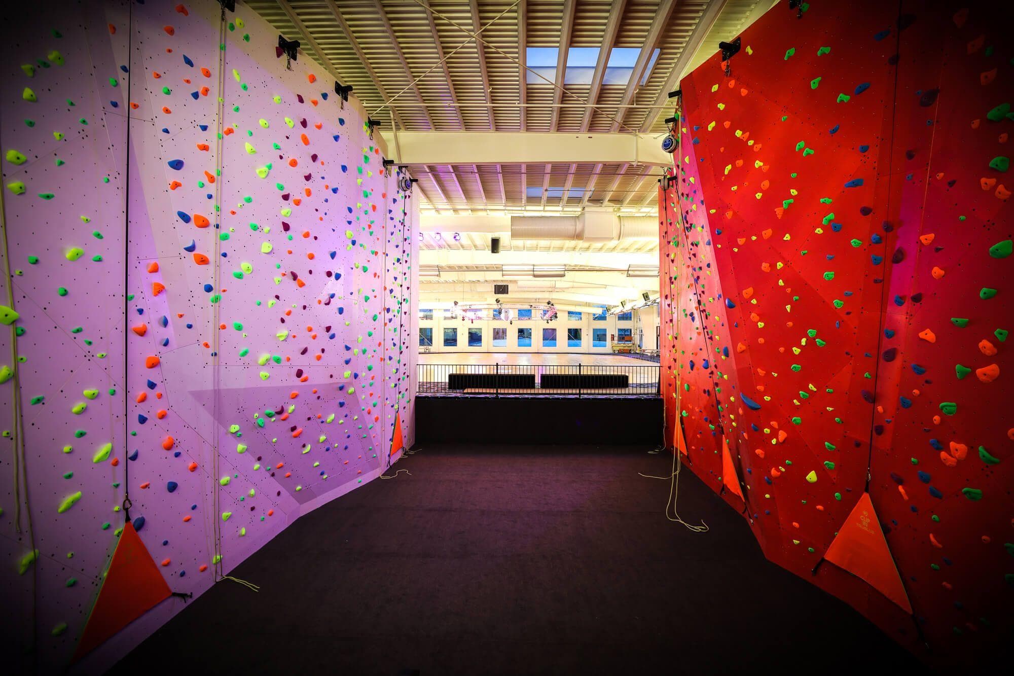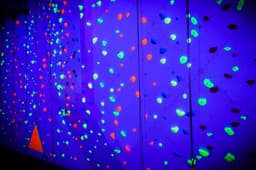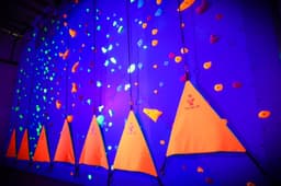 Imagine how stoked you would be to turn the corner after spending all your quarters in the arcade, to find this: a plethora of fun and challenging climbing walls all black-lit with climbing holds! This facility illustrates how deep our range of offerings truly goes.