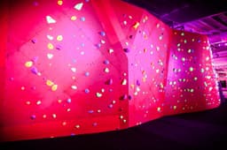 A giant megaplex built for kids, Rush Funplex approached Vertical Solutions to create a fun experience geared toward first-time climbers, and sought a solution that was both cost-effective and quick to install. Our team got to work and delivered 5,500 square feet of climbing walls combined with custom-mixed climbing holds designed to react with blacklight. Our SLM wall system was a perfect match for Rush Funplex's budget and timeline.