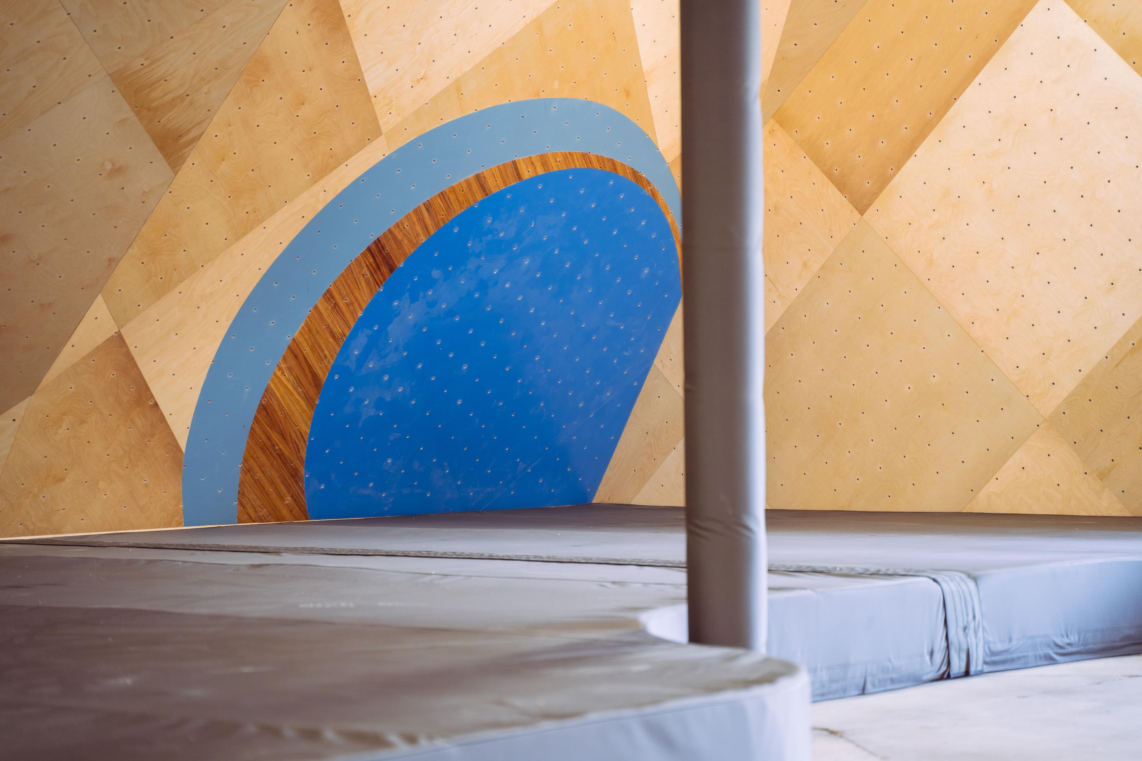 Competitive and dedicated climbers now have a space of their own just a few blocks from Sender One's main facility in Santa Ana, California. The training center features more than 3,500 square feet of precisely angled walls for comp-specific route setting, with hardwood and royal blue details inspired by the Sender One logo.