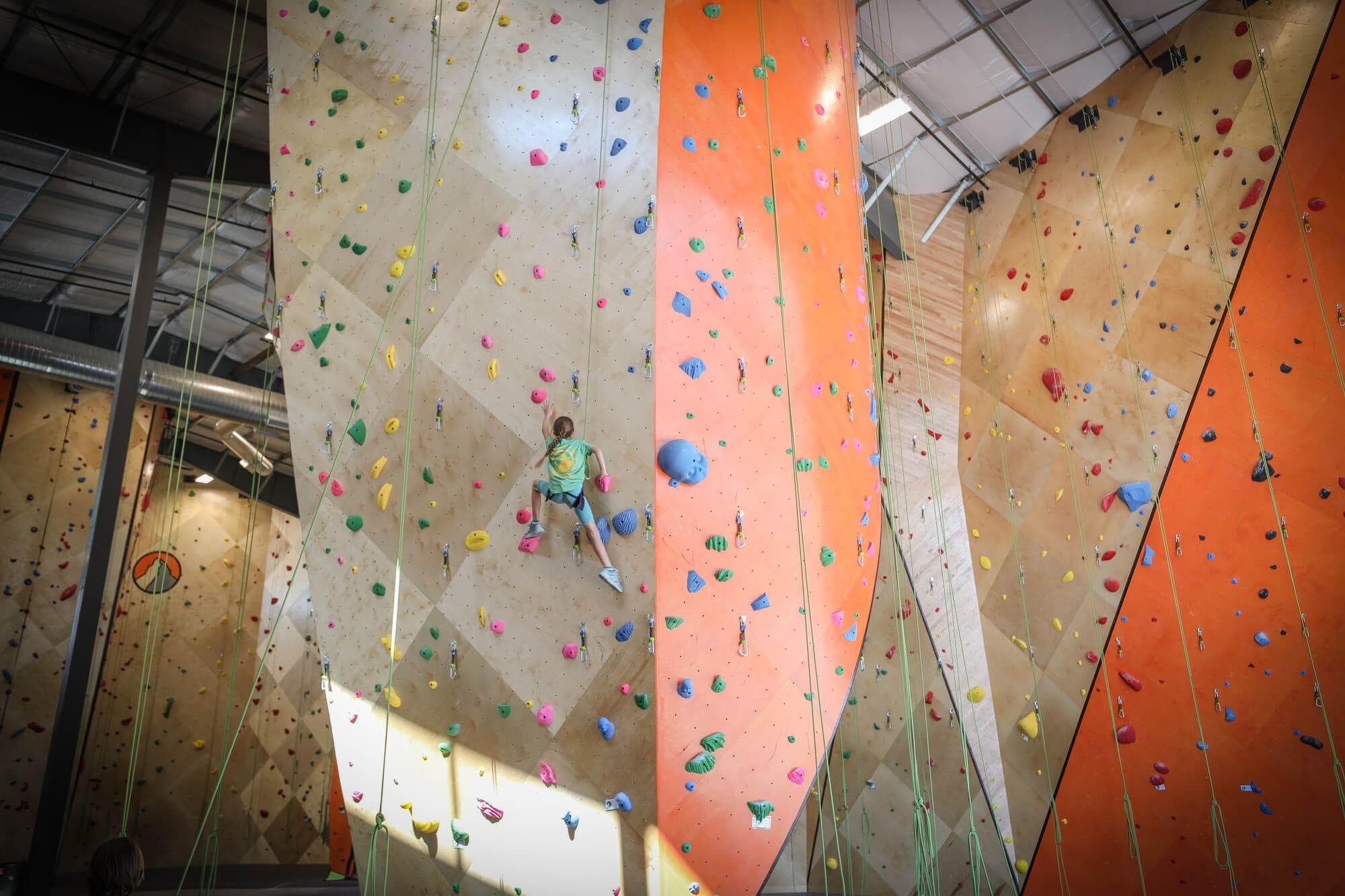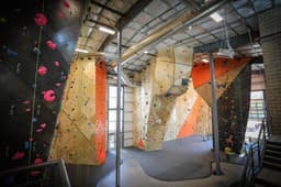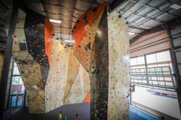 A modern, design-driven facility located in Denver, Colorado, Ubergrippen's 23,000 square-foot facility features 16,000 square feet of route climbing and 2,500 square feet of bouldering, along with yoga, fitness, and a retail store. Over the course of two years, Vertical Solutions partnered with gym owners Jake and Kim Crine to help bring their beautiful vision to life.