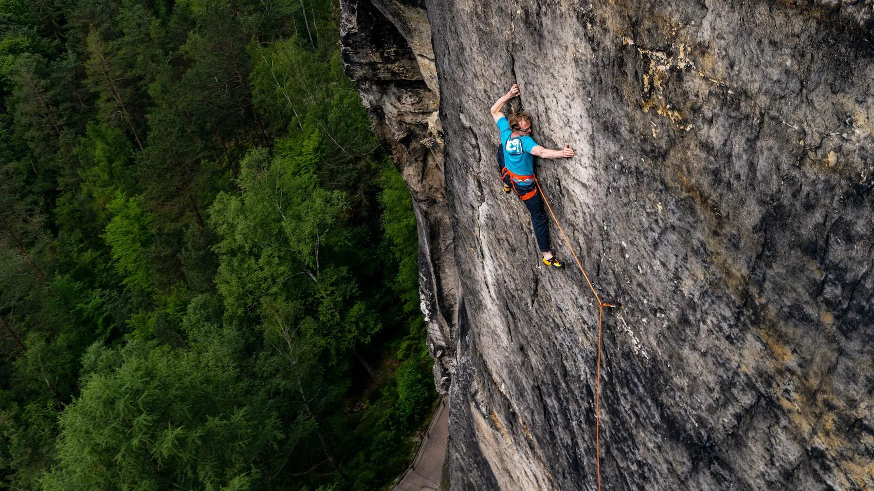 Having made the first free ascent of Vertreibung der letzten Idealisten (5.14b) in Germany’s Elbsandstein – one of the oldest climbing areas in the world notoriously recognized for its rigid ethics of no metal protection or chalk – Robert Leistner is a total badass.
